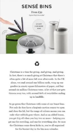 The reason I chose this is because of the story behind it. The merch team had a bit of a problem on their hands – they had a huge stock of the aforementioned bins that simply weren’t shifting. So, I wrote a new hook for the product, tying it to Christmas and recycling. It resulted in a huge increase of sales that made this humnle email the most profitable of the year.